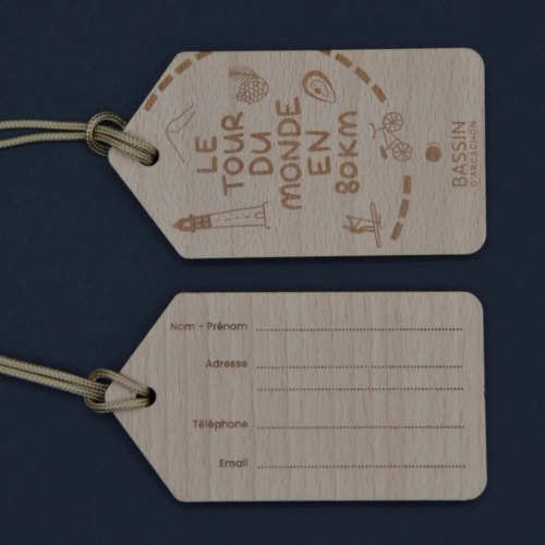 Étiquettes bagages personnalisables en bois, parfaites pour vos événements professionnels et renforcer la visibilité de votre marque en voyage.